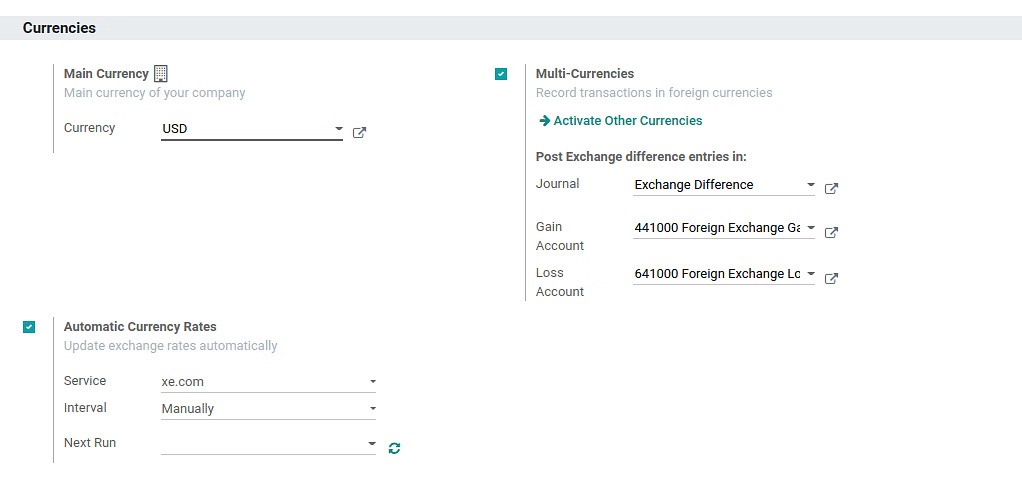 Odoo ERP Supports Multi-Company and Multi-Currency