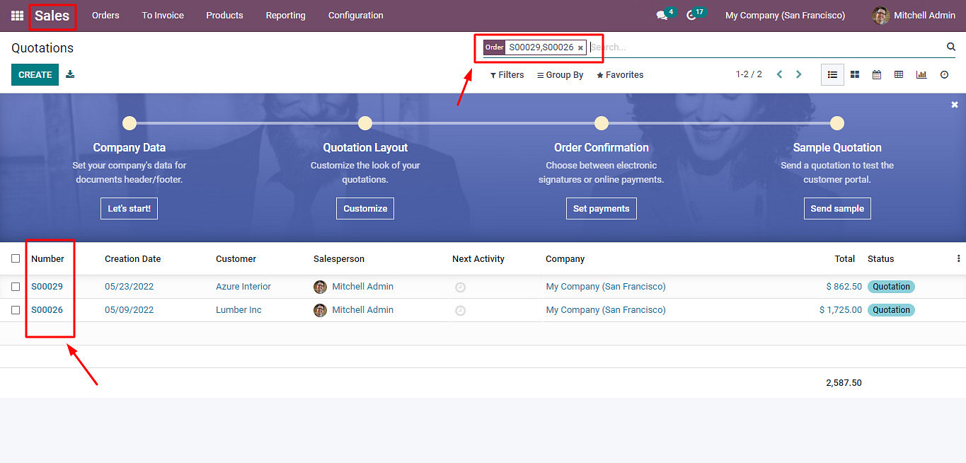 Bulk search with commas separated in Odoo is mostly used for the search bulk result at any apps of Odoo. Let’s see into the Sales apps.