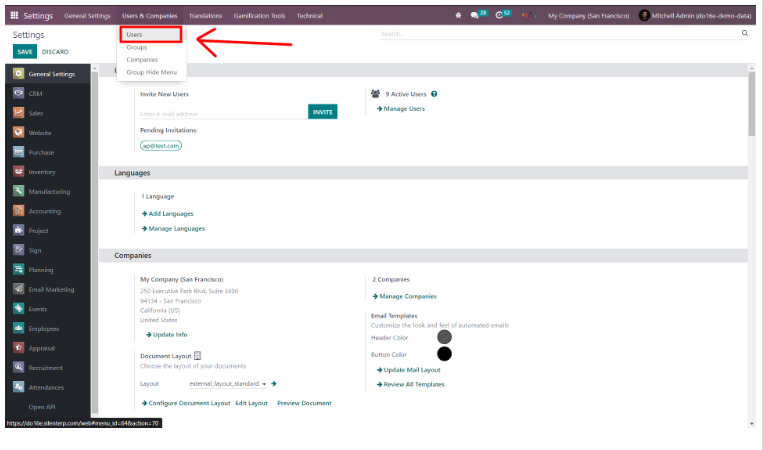 Launch the Settings application, then navigate to the “Users & Companies” section. Afterward, choose “Users” from the dropdown menu.