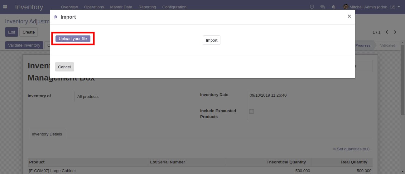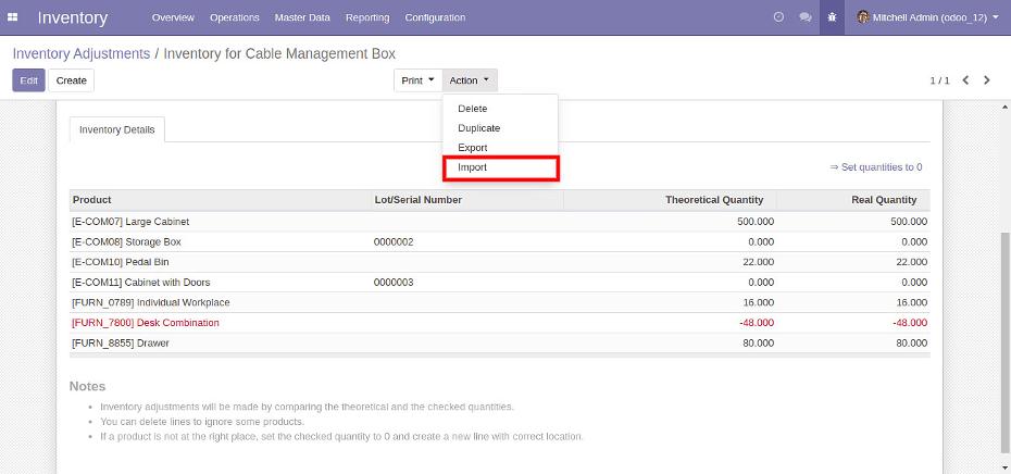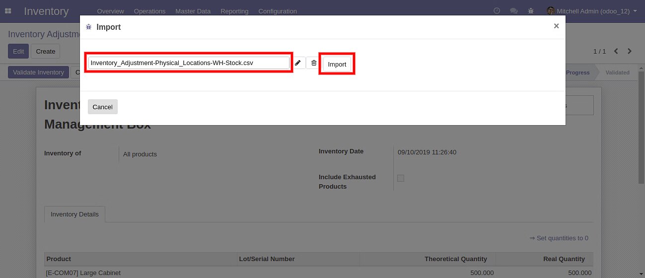 This module also allows to Import the CSV file again in the Inventory along with the changes.